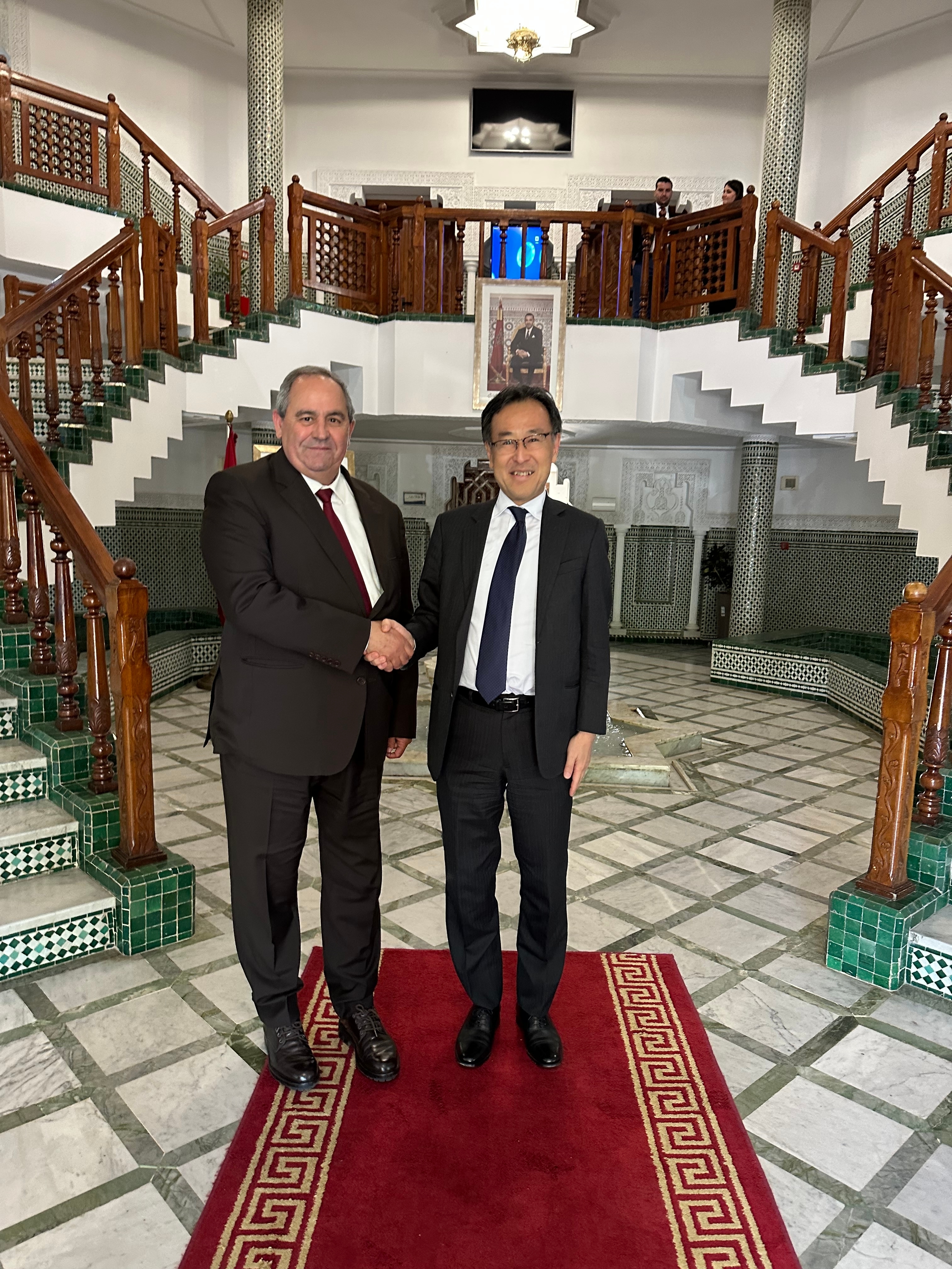 中田大使は、モロッコが本計画に参加する唯一のアラブ・アフリカの国であり、その参加が日本にとって非常に重要であることを強調しました。これに対し、エル・ミダウィ大臣は、本計画が優れたものであると評し、また、両者は本計画の重要性を認識し、今後同計画の実施に向けて緊密に連携していくことを確認しました。