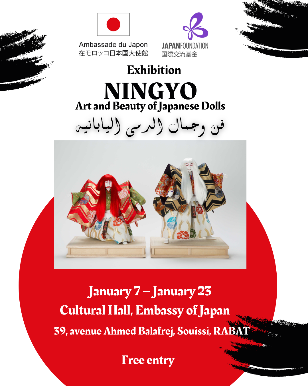 在ラバト日本国大使館は、「NINGYŌ:日本人形」展を開催いたします。本展は、人形と日本の文化の深いつながりを紹介するものです。